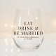 Modern Eat Drink Be Married Wedding Stemless Wine Glass