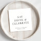 Modern napkins for your wedding reception, rehearsal dinner, engagement parties, couples showers and other wedding events with "Eat Drink & Celebrate," your first names and your wedding date in elegant serif typography.