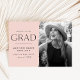 Celebrate your graduate's exciting milestone with these unique photo graduation announcements! The design features "congrats to our grad" in black modern lettering with a blush pink background with a torn edge bordering the graduate's senior photo. Personalize the announcement by adding the graduate's name, school name, and graduation year. The card reverses to display a solid blush pink background.