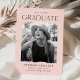 Celebrate your graduate's exciting milestone with these modern photo graduation announcements! The design features the graduation year at the top with "Graduate" shown below in black modern lettering. The graduate's photo is displayed inside of a blush pink frame with torn edges. Personalize the announcement by adding the graduate's name, school name, and future plans (college, military, career choice, etc.). The card reverses to display a solid blush pink background.