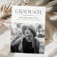 Celebrate your graduate's exciting milestone with these modern photo graduation announcements! The design features "Graduate" at the top in black modern lettering with a white torn edge bordering the graduate's senior photo. Personalize the announcement by adding the graduate's name, school name, and graduation year. The card reverses to display a textured white and black striped pattern.