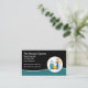This unique editable cleaning service business card design template is created with a cleaning professional character holding a mop and includes text templates you can edit and customize with your own maid or housekeeper information.