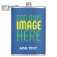 Well made flask, a little better than I had expected. Flask came in clear plastic box which gave it a nice presentation when I took it out of the zazzle packaging. Image is not printed on flask but on sticker. Don't know how this will hold up I haven't used it yet. This would make a Great gift! I plan to purchase more for friends! Cheers. I thought a little brighter than computer. Very crisp, writing wasn't