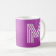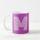 Start your morning with this bold violet purple and white coffee mug featuring your monogram initial in large modern text. Shown is the editable initial letter M on a purple background with slight variations of color. Designed by Heard_.