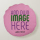 MODERN EDITABLE CUTE HOT PINK IMAGE TEXT TEMPLATE ROUND PILLOW