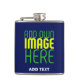 Well made flask, a little better than I had expected. Flask came in clear plastic box which gave it a nice presentation when I took it out of the zazzle packaging. Image is not printed on flask but on sticker. Don't know how this will hold up I haven't used it yet. This would make a Great gift! I plan to purchase more for friends! Cheers. I thought a little brighter than computer. Very crisp, writing wasn't