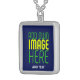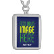 MODERN EDITABLE CUTE NAVY BLUE IMAGE TEXT TEMPLATE SILVER PLATED NECKLACE