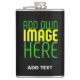Well made flask, a little better than I had expected. Flask came in clear plastic box which gave it a nice presentation when I took it out of the zazzle packaging. Image is not printed on flask but on sticker. Don't know how this will hold up I haven't used it yet. This would make a Great gift! I plan to purchase more for friends! Cheers. I thought a little brighter than computer. Very crisp, writing wasn't