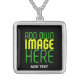 MODERN EDITABLE SIMPLE BLACK IMAGE TEXT TEMPLATE SILVER PLATED NECKLACE