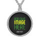 MODERN EDITABLE SIMPLE BLACK IMAGE TEXT TEMPLATE STERLING SILVER NECKLACE