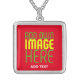 MODERN EDITABLE SIMPLE RED IMAGE TEXT TEMPLATE SILVER PLATED NECKLACE