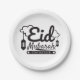 Modern cute white and gold Eid Mubarak stay blessed, Happy Eid party, event plates. Muslim holiday Eid paper plates by Paper works co.