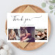 This modern, elegant newborn birth announcement and baby shower ´´thank you´´ card features a simple, minimalist white background and dark grey calligraphy. The "thank you" header is in whimsical calligraphy script, and your custom text— baby´s name, and stats —is in classic typography. The card features an asymmetrical photo collage of three photos. The reverse features a custom text and a tiny heart above. Create your own birth announcement and baby shower thank you card by clicking on the ´´Personalize´´ button and replacing the templates with your own details and photographs. Perfect for a baby girl and a baby boy!