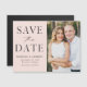 Announce your wedding date with this stylish, modern photo save the date magnet. The design features "Save the Date" in black serif and script fonts with a blush background. Personalize the minimalist save the date magnet by adding your names, date, wedding location, and photo. The simple save the date magnet is perfect for any wedding theme.