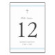 The classic elegant baptism table number sign is a modern, clean invite featuring pastel blue stripes and a minimal cross with editable grey text.