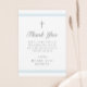 The simple stripe baptism thank you card is modern and clean featuring soft blue stripes and a cross. Grey customizable type allows you to change all of the information on the card to your liking. Perfect for a little boy's baptism.