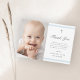 The classic stripe baptism thank you card is a modern, clean postcard featuring soft blue stripes and a cross with photo on the front. The back is a mailable postcard. Gray customizable type allows you to change all of the information on the card to your liking. Perfect for a little boy's baptism.
