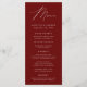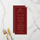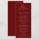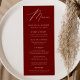 Simple and elegant wedding menu featuring "Menu" displayed in a modern white script with a burgundy background or color of your choice. Personalize the burgundy wedding menu by adding your names, wedding date, and menu information. Designed to coordinate with our Modern Elegance wedding collection.