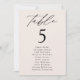 Elegant wedding seating chart featuring "table" displayed in black calligraphy script with the table number and guest names shown below on a cream background. The design repeats on the back. To order the table number seating chart, edit each card with the table number and guest names and add it to your cart. Designed to coordinate with our Modern Elegance wedding collection.
