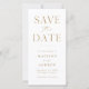 Announce your wedding date with this stylish, modern photo save the date card. The design features "Save the Date" on the front in gold serif and script fonts with a white background. Personalize the minimalist save the date announcement by adding your names, date, and wedding location. The card reverses to display your favorite engagement photo. The simple save the date announcement is perfect for any wedding theme.