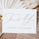 Elegant wedding thank you card featuring "Thank You" in a gold calligraphy script with your last name displayed below. The gold wedding thank you card reverses to display your custom thank you message and first names in white lettering with a gold background. Design coordinates with our Modern Elegance wedding collection.