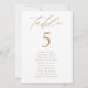 Elegant wedding seating chart featuring "table" displayed in gold calligraphy script with the table number and guest names shown below. The design repeats on the back. To order the table number seating chart, edit each card with the table number and guest names and add it to your cart. Designed to coordinate with our Modern Elegance wedding collection.