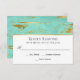 A luxurious wedding RSVP design in a mint and gold abstract marbled pattern. The contemporary text style has generous white space with lovely font pairings of script and serif text that add tasteful style.