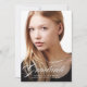 This photo graduation announcement features the word "graduate" in a white elegant script with customizable text below. Graduation party details can easily be added to the back by deleting the existing background.