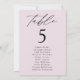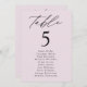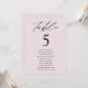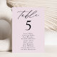 Elegant wedding seating chart featuring "table" displayed in black calligraphy script with the table number and guest names shown below on a lavender purple background. The design repeats on the back. To order the table number seating chart, edit each card with the table number and guest names and add it to your cart. Designed to coordinate with our Modern Elegance wedding collection.