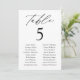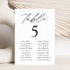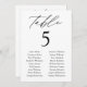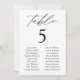 Elegant wedding seating chart featuring "table" displayed in black calligraphy script with the table number and two columns of guest names shown below. The design repeats on the back. To order the table number seating chart, edit each card with the table number and guest names and add it to your cart. Designed to coordinate with our Modern Elegance wedding collection.