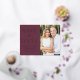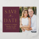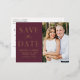 Announce your wedding date with this stylish foil save the date postcard. The design features "Save the Date" in gold foil lettering with a wine-colored background. Personalize the modern save the date postcard by adding your names, date, wedding location, and engagement photo. The foil save the date postcard reverses to display your return address and wedding details. The photo save the date card is perfect for any wedding theme.