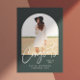Modern elegant arch 1 photo typography green graduation announcement card.