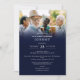 This elegant celebration of life invitation features a classic navy blue background with sophisticated white typography for a timeless and respectful design. The front includes your loved one's name or nickname, and the date, time, and location of the service in a clean, modern layout. The back of the card showcases a full photo layout with the phrase "in loving memory," and your loved one's name and dates of life in bold serif lettering, creating a striking visual tribute to a loved one. Designed to balance beauty and simplicity, this memorial invitation is perfect for funerals, memorial services, life celebrations, or remembrance events, offering a professional and heartfelt way to honor and remember someone special.