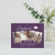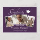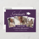 Beautiful 3 photo graduation announcement postcards. Featuring modern text with elegant calligraphy script on purple. To see more items like this, visit my store here at "www.Zazzle.com/LakeViewCardCo". Thanks