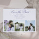 Capture your guests' attention with this save the date card, featuring a stylish 3-photo template. This elegant design beautifully blends your personal photos with chic script and serif fonts, creating a memorable announcement for your upcoming wedding day. With space for your images and event details, this card allows you to share the excitement of your celebration in a polished, modern style!