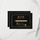Modern Elegant Minimalist Black and Gold Wedding RSVP card. Gold Frame.
