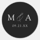 Modern Elegant Black and White Monogram Wedding Classic Round Sticker