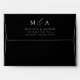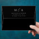 Elegant monogram wedding envelopes featuring your monogram displayed in white lettering with a calligraphy script ampersand in the middle of the two initials on a black background. Personalize the envelope flap with your names and return address.