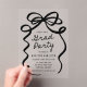Celebrate your graduate in style using this Modern Elegant Black Bow Acrylic graduation party invitation! Designed with a bold black bow gracefully framing the party details on a transparent acrylic background, this invitation radiates sophistication and contemporary charm. The stylish black script font enhances its modern appeal, making it an ideal choice for both high school and college graduation celebrations. Make your event unforgettable with this sleek and trendy invitation!