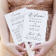 Keep your guests cool and informed with this stylish wedding program hand fan, featuring elegant black calligraphy on a crisp white background. Perfect for weddings in any season and suited for both formal and casual celebrations, this modern and practical design allows couples to personalize the front with their names, wedding date, location, and a heartfelt thank-you message in bold black lettering. The reverse side displays the ceremony details and the names of your bridal party, adding a thoughtful and personal touch. Combining functionality with timeless elegance, this wedding program hand fan is a beautiful way to enhance your guests’ experience while complementing the sophisticated aesthetic of your special day.