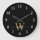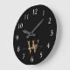 Modern Elegant Black Gold Monogram Name Script Large Clock