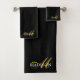 Modern Elegant Black Gold Monogram Script Initial Bath Towel Set