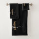 Modern Elegant Black Gold Monogram Script Name Bath Towel Set