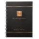 Luxury exclusive looking monogrammed stylish personalized notebook featuring a faux gold copper metallic glitter square and lines over a stylish classy black leather look background. +++++++++ Personalize it with your text, your name and monogram initials.