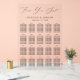 Modern wedding seating chart featuring "Welcome" displayed at the top in an elegant black calligraphy script with a transparent acrylic background. Personalize the minimalist seating chart with your names, wedding date, and guest names for your 20 tables. The acrylic seating chart coordinates with our Modern Elegant wedding collection.