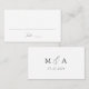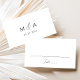 Modern wedding place cards featuring black calligraphy script on a white background. The back of the black and white place cards feature your monogram initials with your wedding date shown below. The elegant script place cards are perfect for modern wedding receptions, rehearsal dinners, and other special events.
