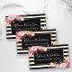 Modern Elegant Black Striped Pink Floral Business Card
