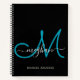 Modern Elegant Black Teal Script Monogram Notebook