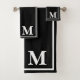 Modern Elegant Black &white Monogram Script Name Bath Towel Set