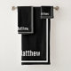 Modern Elegant Black &white Monogram Script Name Bath Towel Set
